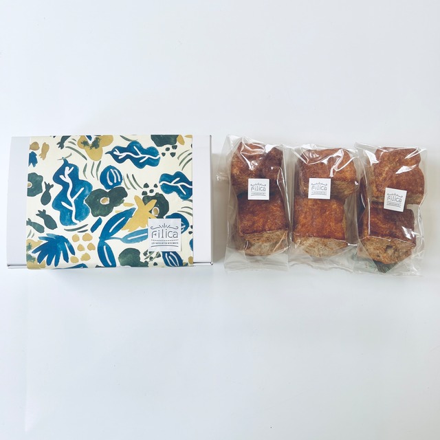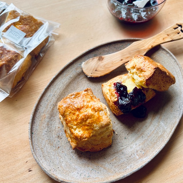 ★こちらの商品は2月13日(金)発送予定です。 Filica定番スコーン『プレーンスコーン』3袋セット 日々の暮らしに、ほっと一息。 美味しいおやつ時間をお楽しみいただけるとうれしいです。 ************************** ◆内容: ・プレーンスコーン(2個入) x 3袋 ************************** ◆原材料: 小麦粉(国産)、牛乳、バター、卵、砂糖、アガベシロップ、ゲランドの塩(フランス産) / ベーキングパウダー(アルミ不使用) ◆特定原材料(8品目中) 小麦・卵・乳 ◆賞味期限: 製造日より常温で3日 ※スコーンは発送日当日製造となります。 ◆保存方法:25℃以下の常温で保存。 保存料は使用していないため、賞味期限にかかわらずなるべくお早めにお召し上がりください。 ◆美味しいお召し上がり方: 1.袋からスコーンを取り出し、ラップに包んで、電子レンジ600W10秒(目安)ほど加熱。 2.トースターで1~2分ほど(目安)あたためる バターやお好みのジャムと合わせてお楽しみください。 **下記、必ずご確認ください** ※8月より箱なしの商品となります。 ※こちらの商品は常温便にて手配させていただきます。クール便対象商品と同時にご購入の場合、すべてクール便に同梱してのご配送となります。 ※食品のためキャンセルおよび変更はご遠慮ください。 ※アレルギー物質を含む原材料を使用しております。原材料をご確認ください。 ※資源削減のため、簡易な梱包にてお送りいたします。予めご了承ください。 ※受け取り可能時間帯を指定することができます。ご希望のお時間帯はご購入時にご記入ください。 ・午前中(翌日に届かない地域もあります) ・14−16時 ・16−18時 ・18−20時 ・19−21時 ※入力ミスなどがないようにご確認の上ご入力ください。万一、入力事項の変更がある場合はお問い合わせください。その場合、発送が遅延する場合がございますので予めご了承ください。 ※北海道、九州、沖縄地方へのお届けは発送より2日~かかります。また、天候不良により発送が遅延する場合がございます。予めご了承ください。