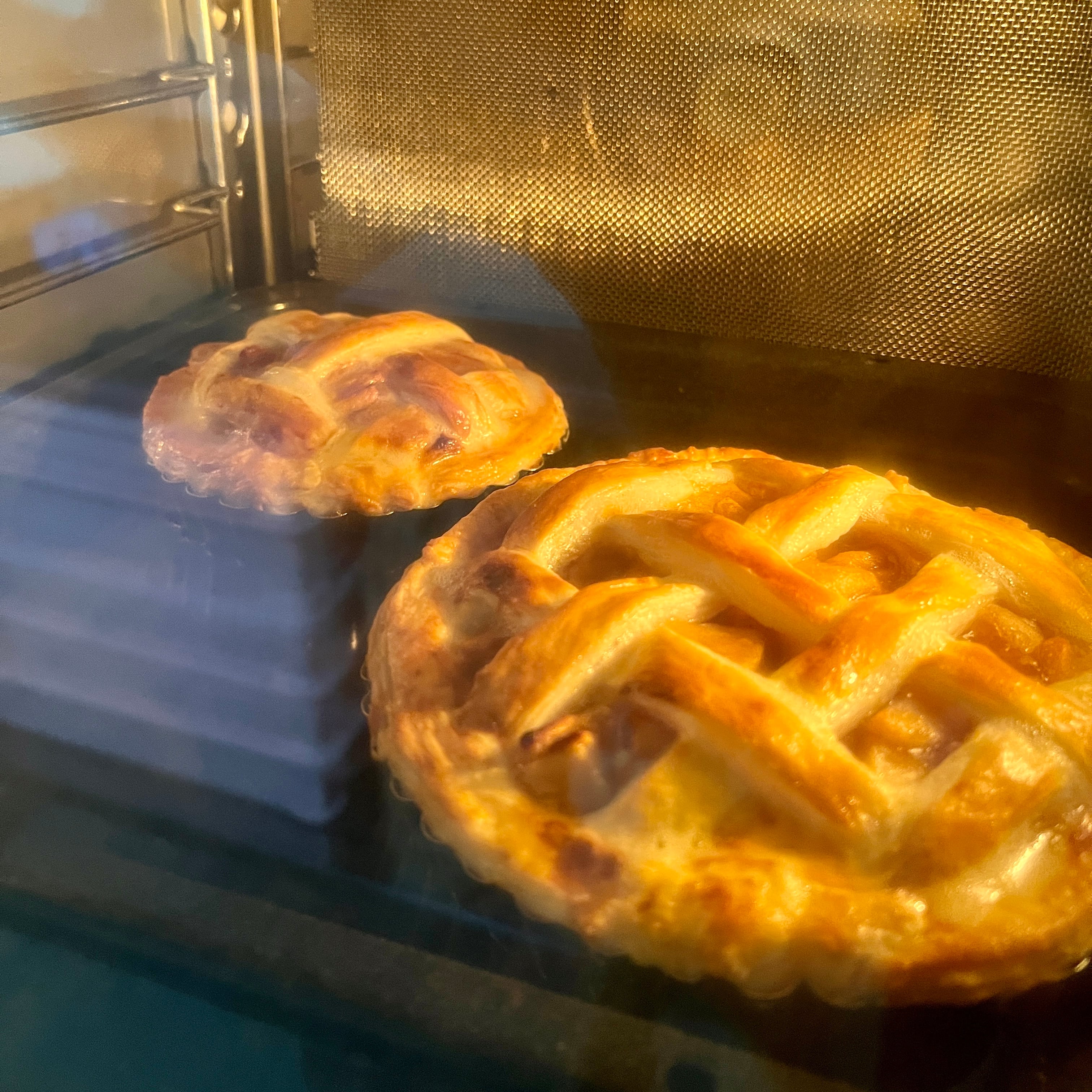 2.袋からパイ取り出し、トースターで1~2分ほど(目安)あたためる