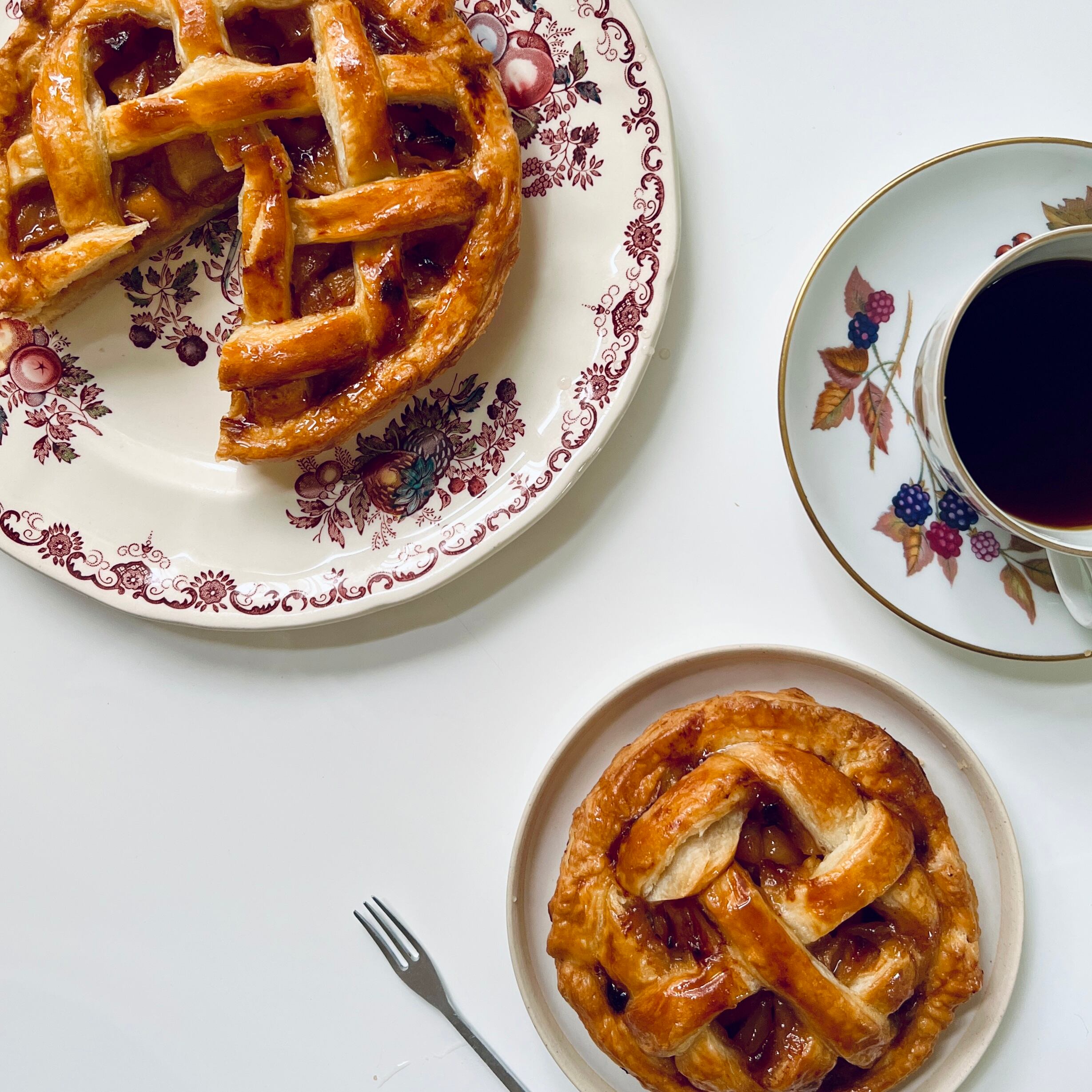 よつ葉バターのサクサクしたパイ生地に、アーモンドクリームとりんごのコンポートをたっぷり詰めて焼き上げました。