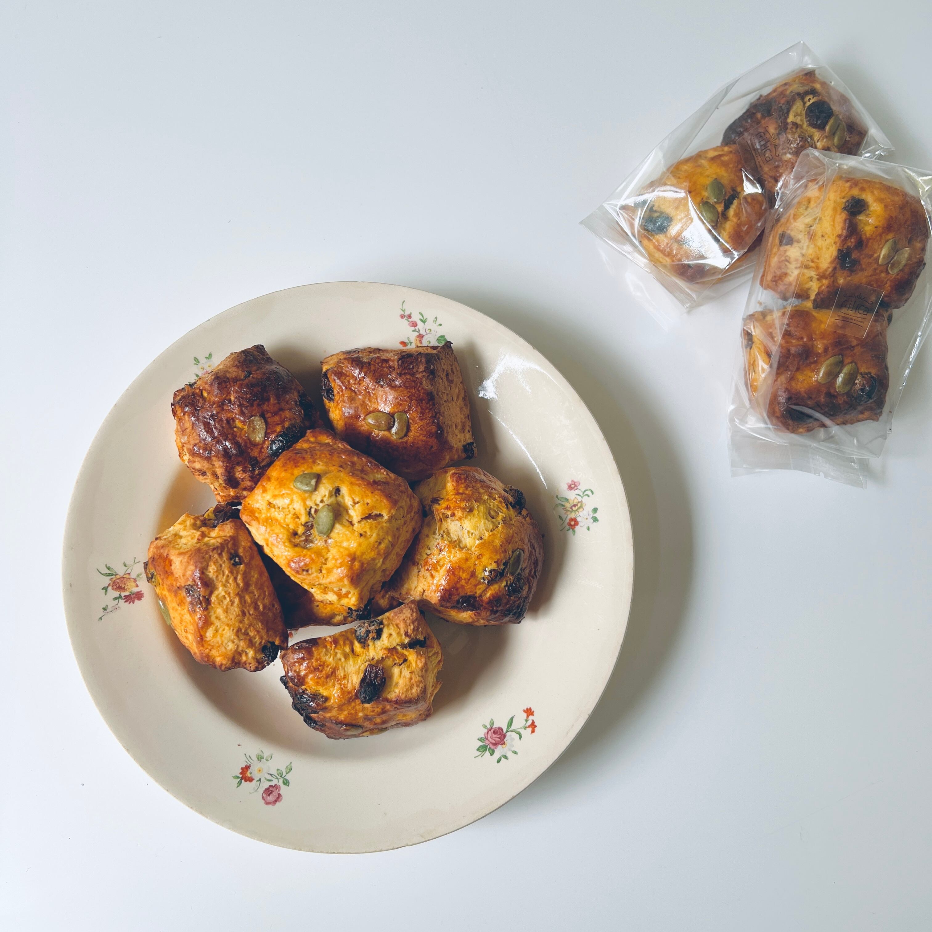 今月のスコーン『かぼちゃとラムレーズンのスコーン』3袋セットです。
