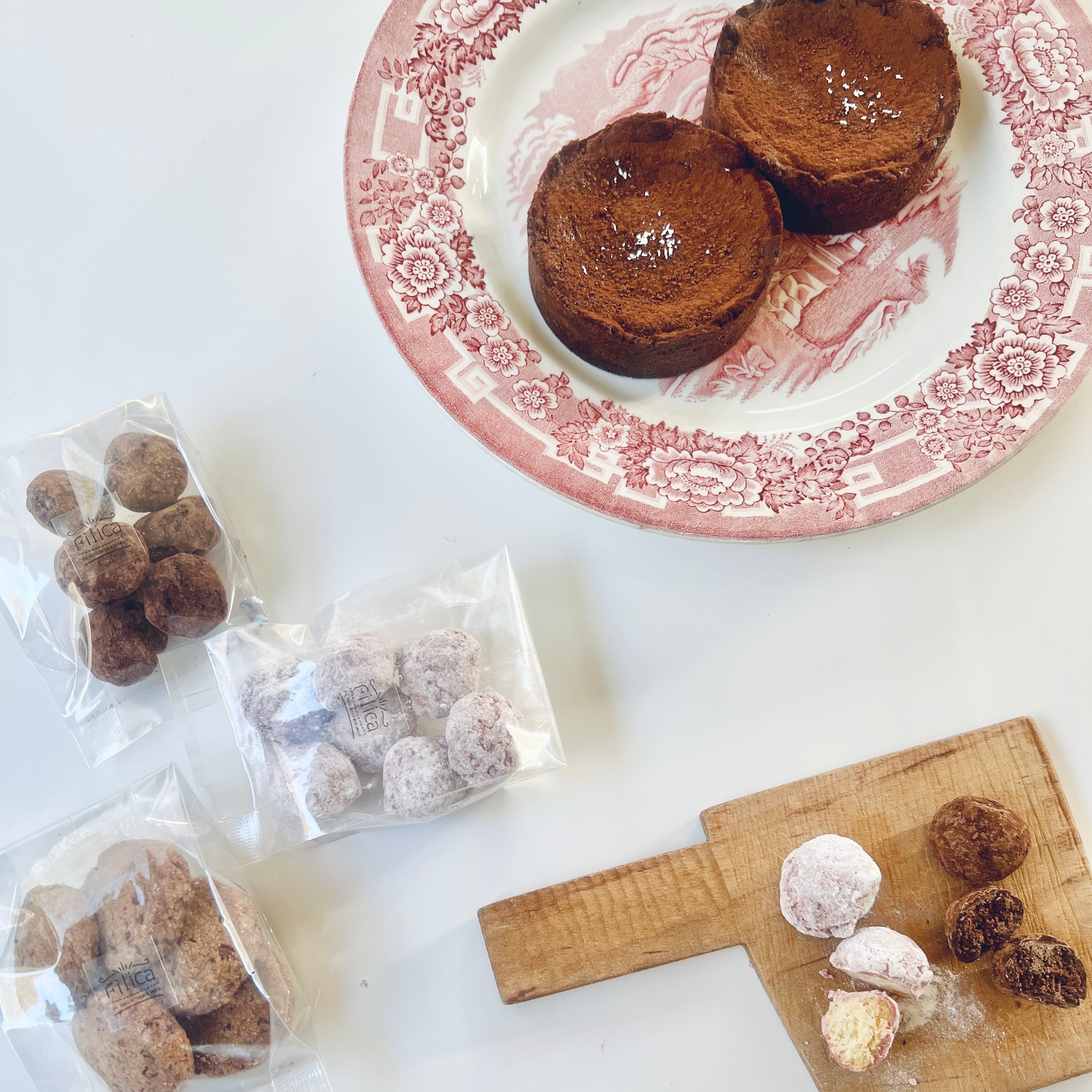 小麦粉(国産)、バター、卵、アーモンドプードル、砂糖、チョコレート、生クリーム、純ココア、銀箔/ベーキングパウダー(アルミ不使用)