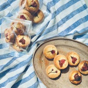 小麦粉(国産)、バター、砂糖、アーモンドプードル、卵、牛乳、バニラビーンズ、桜の塩漬け/ベーキングパウダー(アルミ不使用)